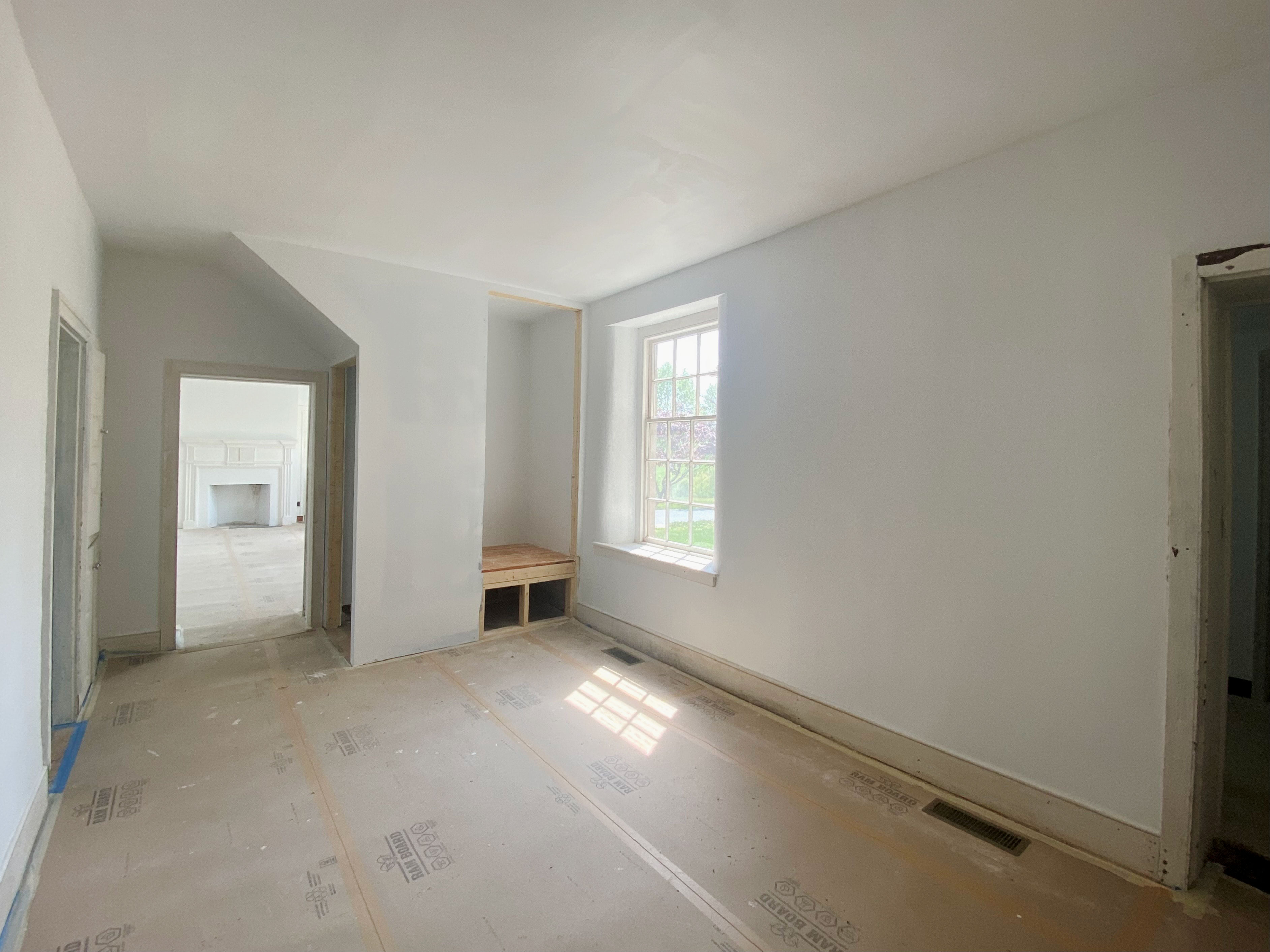 The 1829 Parlor was painted using colors identified in the Preservation Plan. Below photos show the room before and after painting. The oak floor will be refinished after all the rooms are restored.