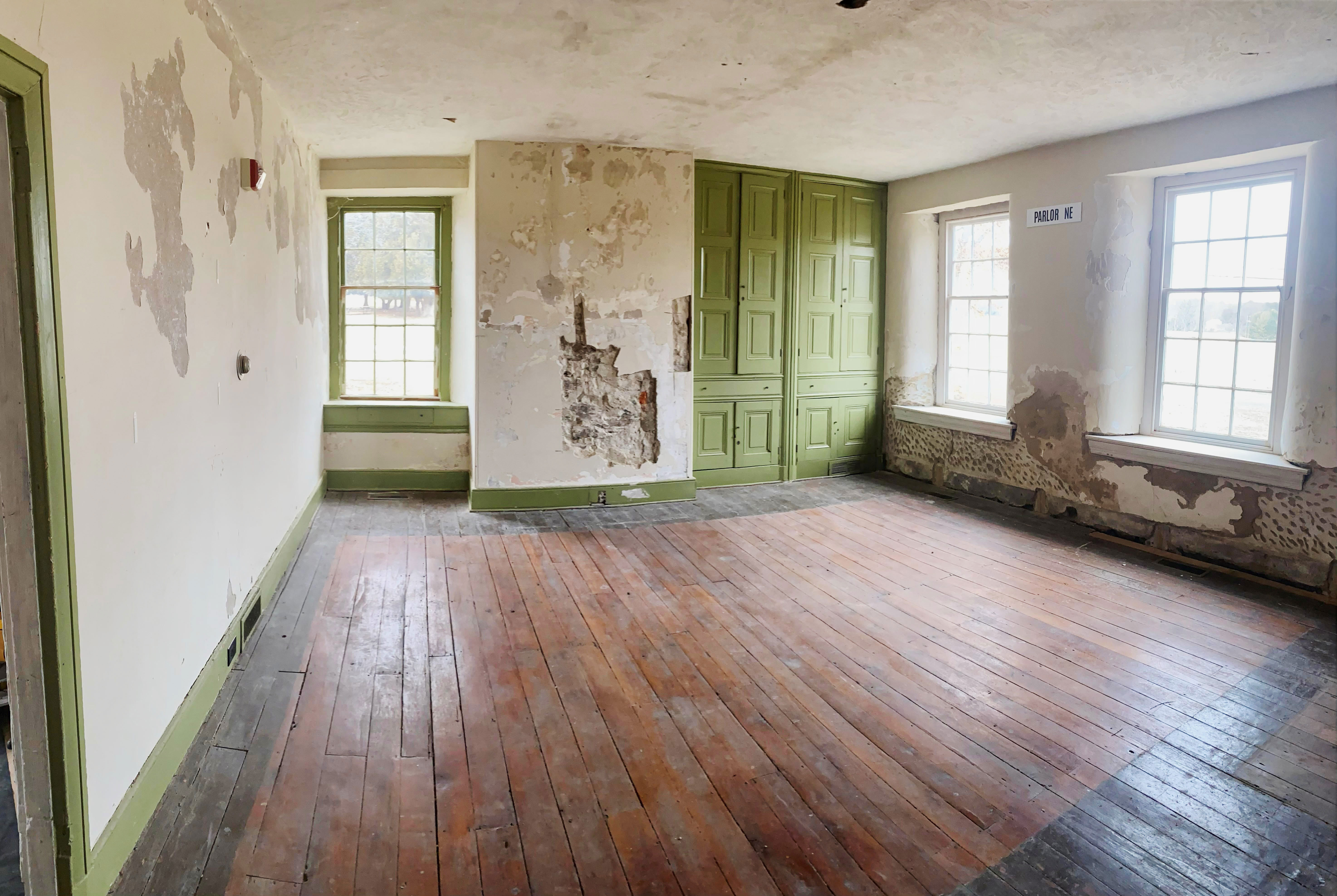 We have been awarded a Keystone Construction Grant by the Pennsylvania Historical and Museum Commission (PHMC) to refurbish the plaster in the c. 1841 Gathering Room at Barnard Station. As with any original material, movement of the structure and moisture intrusion has decayed the plaster system over the past 184 years. The causes of these problems have been addressed so the time has come to repair the internal finishes. The contractor will employ both traditional and modern methods to prepare the walls and ceiling for layers of a wet plaster system. The room was initially plastered in 1841 and has at least one subsequent layer applied to the walls. The bond between those layers has been compromised and the finish has started to break off. Friends of Barnard Station (FOBS) will be financing the costs of this restoration project with a 50% match from PHMC. A fundraising campaign is already underway, but additional funds are needed to meet our goal of $12,500. If you are interested in contributing to this important preservation project, information can be found on our Donate page.