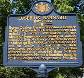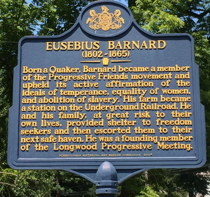 This historic farm in rural Chester County, Pennsylvania was once the home of Eusebius and Sarah Barnard in the 1800s. As Quakers they upheld the ideals of simplicity, truth, equality, and community. As abolitionists, the Barnard family opened their home to freedom seekers on the Underground Railroad. Eusebius Barnard, a progressive community leader, was involved in the founding of Longwood Progressive Meeting as well as a signer of the petition for the formation of Pocopson Township.